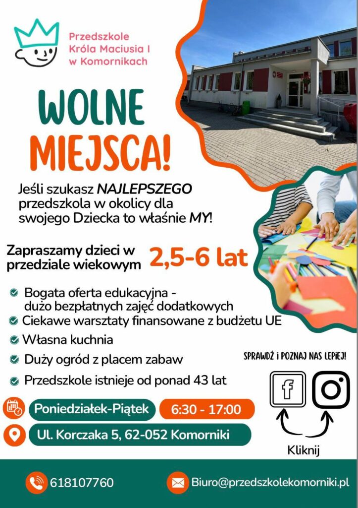 Przedszkole Króla Maciusia I ul. Korczaka 5 62-052 Komorniki